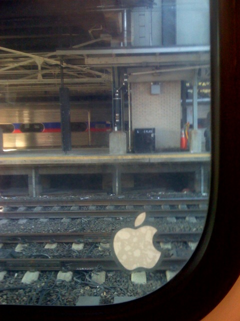 We decided instead of driving into Manhattan that we’d drive part way and take the train the rest of the way in. I randomly chose our seats and the noticed the Apple logo on the window.